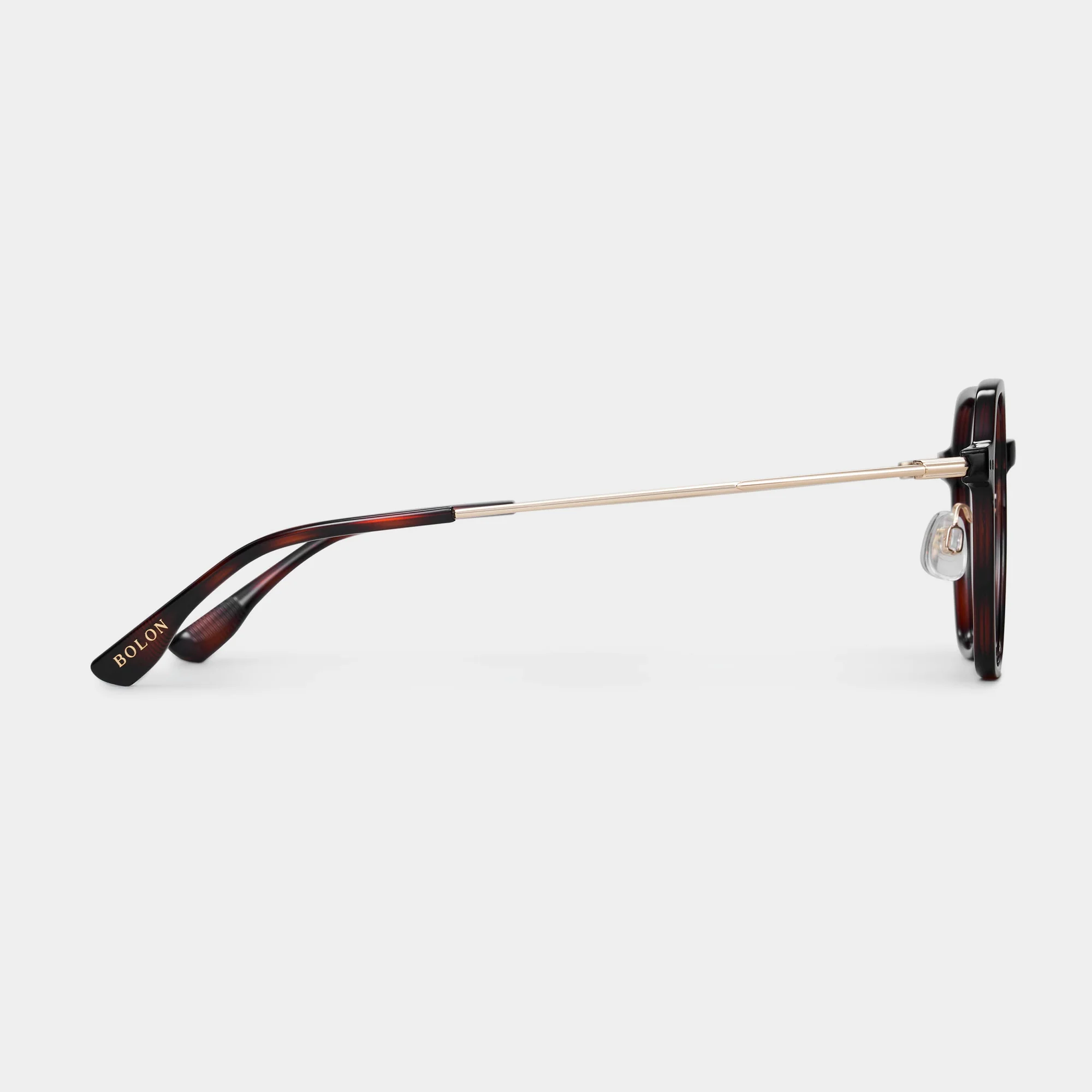 Mẫu gọng Osaka thuộc thương hiệu Bolon, thiết kế dáng Nhiều cạnh (Polygon) và tông màu Vân rùa (Tortoise‑Shell), phối cùng càng/trụ màu Vàng (Golden) — phong cách phù hợp với cả nam và nữ yêu thích vẻ thời trang và tinh tế.
