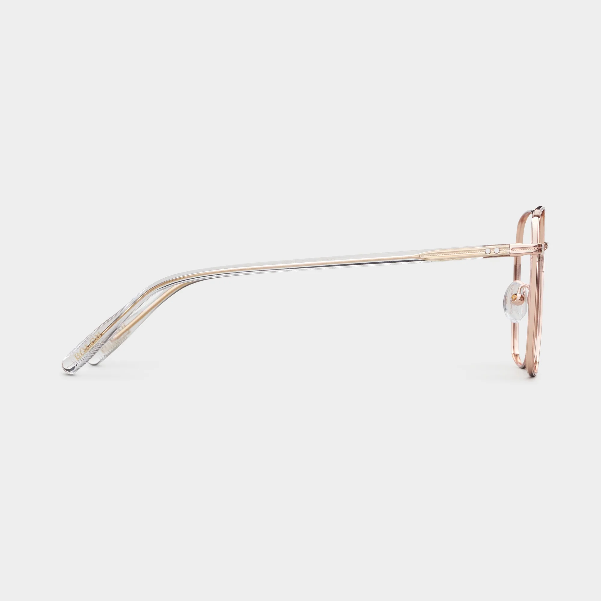 Khung gọng được làm từ Alloy (hợp kim kim loại) — mang lại độ bền cao và tạo dáng chắc chắn cho gọng. Càng và đầu càng (tips) sử dụng phối hợp Alloy / Acetate giúp tăng sự linh hoạt, cảm giác đeo êm ái và mang đến nét thời trang tinh tế. Thiết kế này thích hợp để đeo cả ngày mà vẫn giữ được vẻ ngoài lịch lãm.