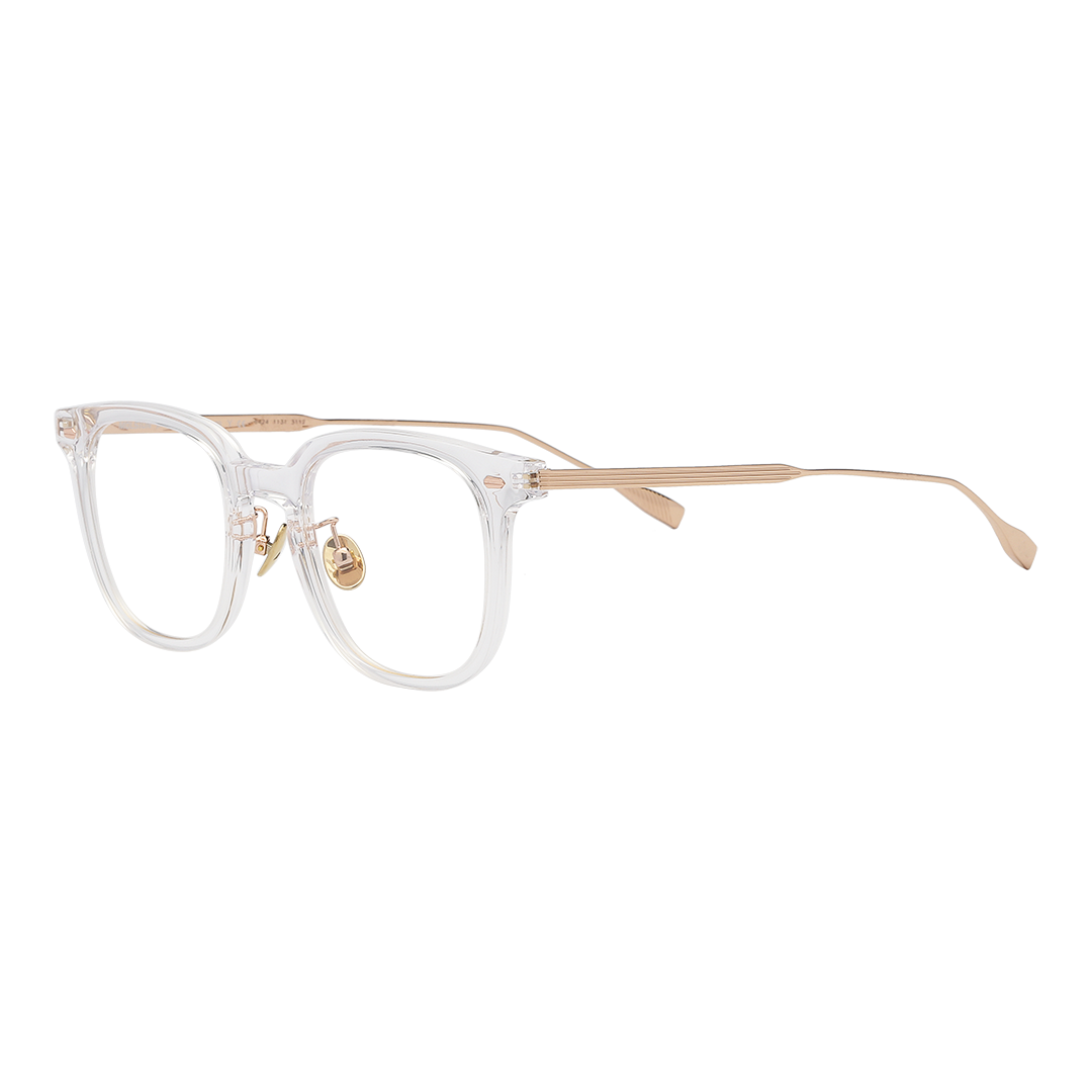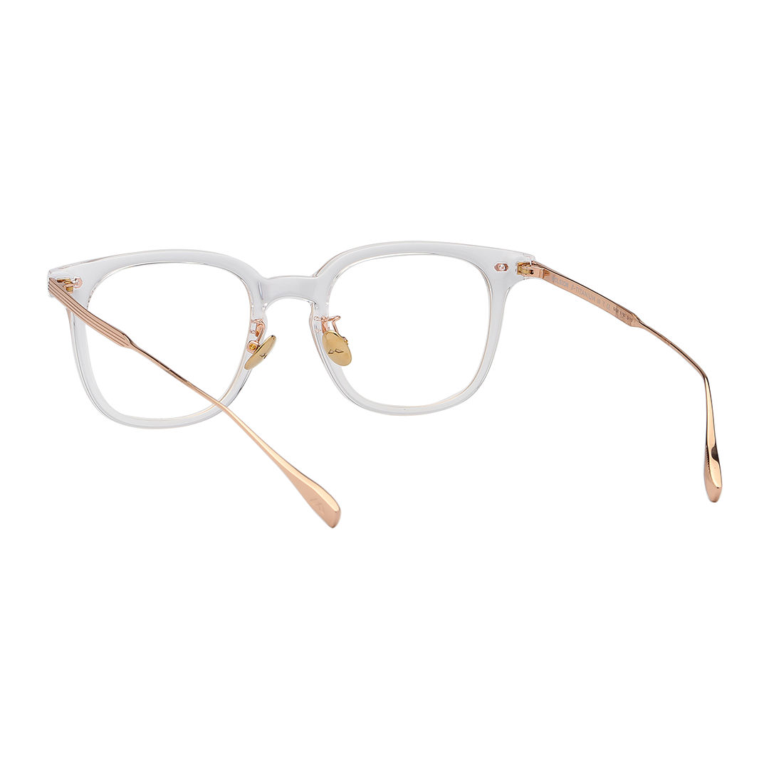 Khung gọng được chế tác từ Titanium & Nhựa, giúp gọng nhẹ, ôm mặt và bền bỉ với thời gian. Thiết kế full‑rim giúp gọng ôm trọn tròng kính và tạo nét chắc chắn.